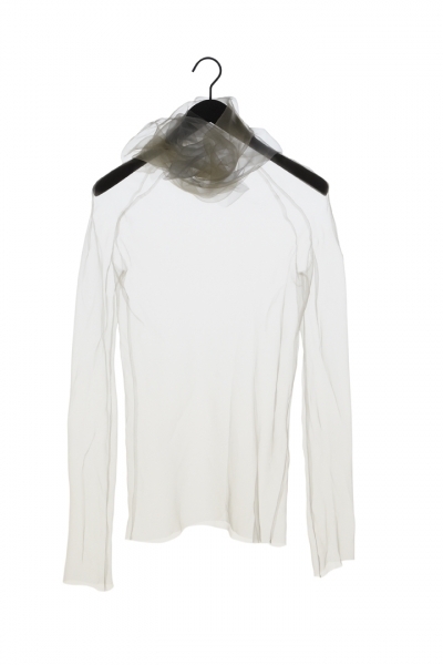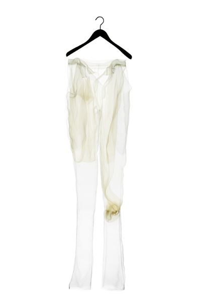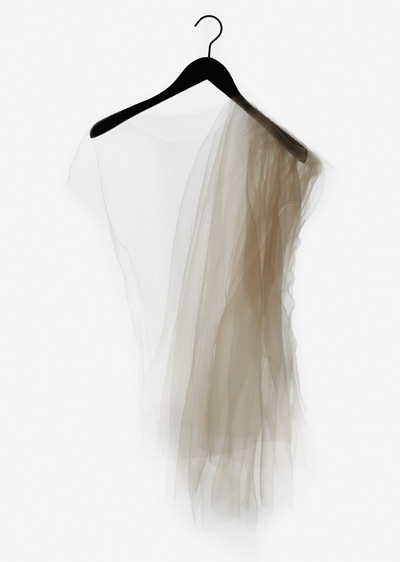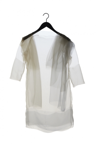 Born from a dream of nebulas, this project renews with one of Ying Gao’s lyricism rich theme as she continues her exploration of the influences between the individual and his/her environment. Diaphanous and light as air, Les Nébuleuses line gives shape to the abstraction of something intangible and elusive. The results are five creations made of super organza with uncertain edges and where the limits are defined by the fabric’s touch on the body. Absent, these clothes float and emit (within) light. This concept of abstract matter gives a result that is dancing on the edge between the literal and figurative sense. A nebulous project – in the idea from which it was developed but mostly in the result.