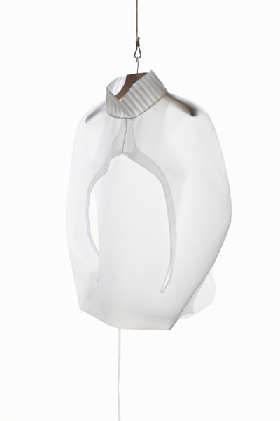 Project Swiss Quality was generously sponsored by five Swiss businesses that specialize in textile production. Laid out with the idea of balance, precision and individualism in mind, the five garments reflect Swiss culture and design: efficiency, neutrality, sobriety and simplicity are also key factors in the project. The five pieces are individual because they’re made of different fabrics offered by the sponsors, but they can be superimposed and worn in a specific order. Their minimal structure is enhanced by volume construction directly structured by pattern alteration. The pieces’ labels, cut out of Swiss organza, reflect the country’s very punctual transport system. Each label consists of two parts, the first is the train travel trajectory time and the second is the transfer time between destinations where Gao had to travel to meet the five sponsors. The pieces are named after the project’s partners: Hausammann+Moos, Schläpfer, Mitlödi, Schöller et Sefar. The project was curated by Céline Studer of [plug in] in Basel.