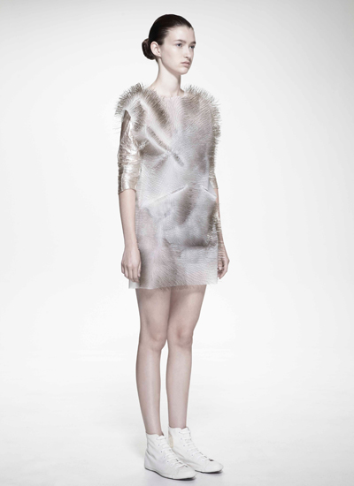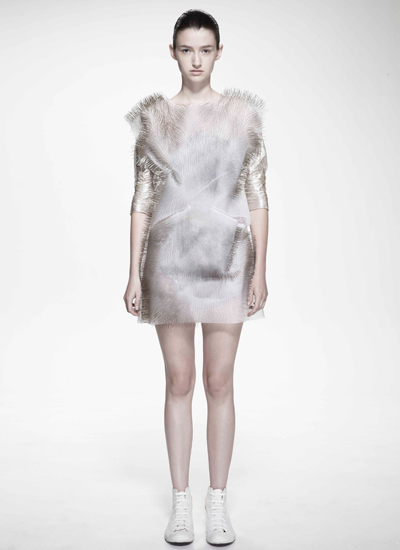 2 interactive garments. PVDF, dressmaker pins, electronic devices